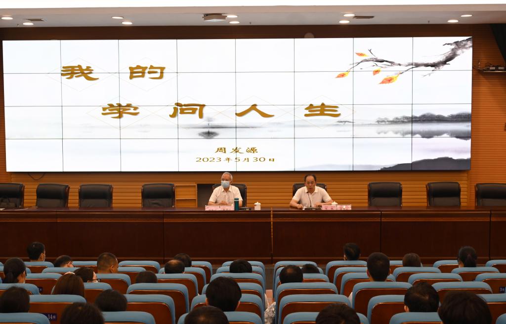 随后,周发源结合自身治学经历,围绕“勤奋、兴趣、质疑、创新、管用”5个关键词,深刻阐述了“学问人生”之道。周发源表示,做基本学问,自强是基础,勤学是路径,责任是杠杆,诚信是支撑,互利是动力;做专业学问,勤奋是根基,兴趣是牵引,质疑是杠杆,创新是灵魂,管用是目的。周发源鼓励教师要多学多思多写,做自己喜欢的学问。在学问中要存有怀疑批判求异、求真求新的精神,做有用能用好用的学问。