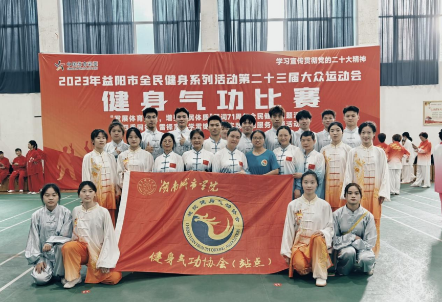 本网讯(通讯员 廖玉美)6月3日,益阳市第二十三届大众运动会健身气功比赛在奥林匹克体育馆举行,来自益阳市各县市区、市直单位、省直单位共60支队伍参加比赛,我校共派出四支师生队伍共计24人参加了八段锦和马王堆导引术两个项目的比赛。