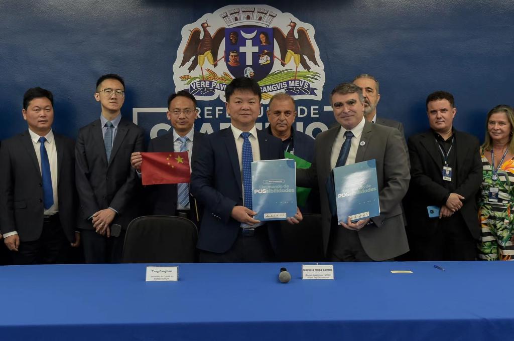 随后,汤放华一行前往巴西,分别对巴西圣安德烈基金会大学等3所高校进行访问,并与各高校校长进行会谈。汤放华表示,自2021年以来,我校与巴方各高校负责人就国际交流项目进行了多次线上洽谈,他希望通过此次出访,进一步增进双方友谊,深化交流合作。汤放华代表学校与巴西瓜鲁柳斯大学和埃尼亚克大学签署了合作谅解备忘录。在巴西访问期间,中国驻巴西圣保罗总领馆副总领事田玉震会见了代表团一行。