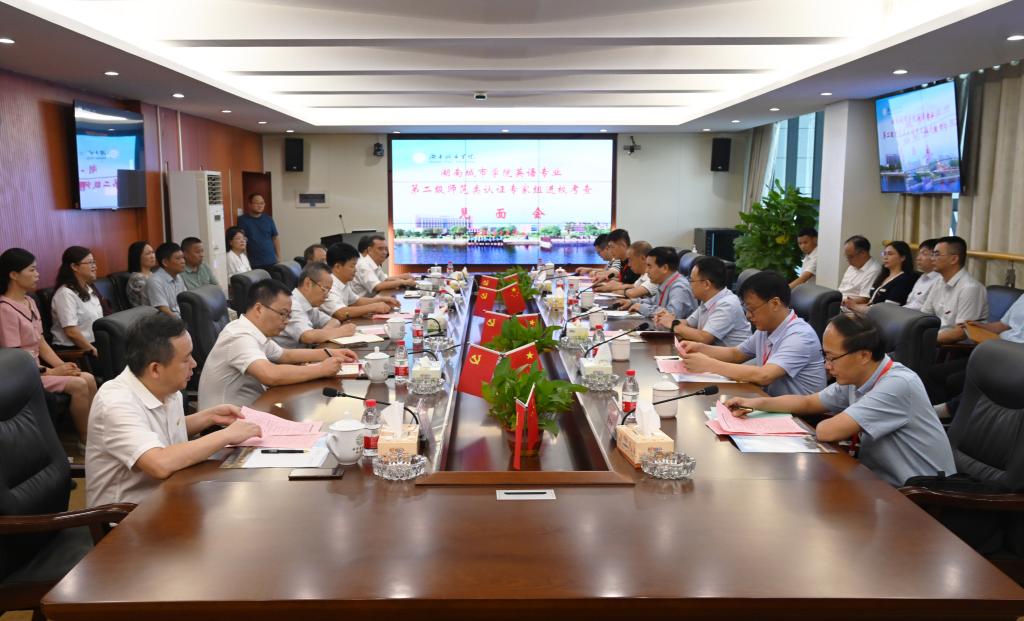 本网讯(通讯员 向博毅)9月18日上午,我校在办公楼一会议室召开英语专业第二级师范类认证专家组见面会。以郑州师范学院教育科学学院院长陈国维教授为组长的专家组进驻我校开展师范专业认证的现场考查。全体校领导,相关职能部门负责人及部分二级学院教学副院长参加见面会。会议由组长陈国维教授主持。