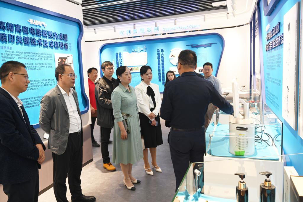 参观过程中,何振向何萍介绍了我校知识产权工作的基本情况,重点介绍了我校在获批省高校知识产权中心以来的工作进展情况。他表示,华体网页版十分重视知识产权工作,一直把知识产权创新和转化应用作为学校科研工作的重要抓手,形成了以质量为核心、以转化为导向的知识产权管理工作体系和转化机制,并取得明显成效。