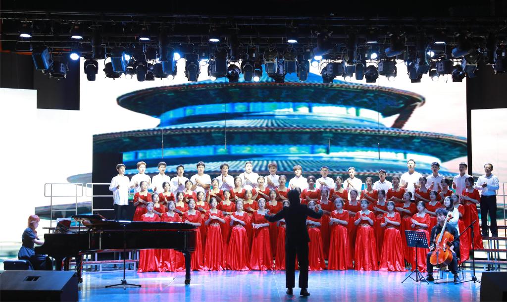 一袭红白渐变的长裙,一身笔直的西装,美术与设计学院/国际教育学院40名大学生饱含深情演唱了《我爱你中国》,拉开了比赛的帷幕。伴随着激情澎湃的节奏,《灯火里的中国》《中国军魂》《国家》《祖国不会忘记》在同学们的倾情演绎中,表达了对祖国的深情祝福;《梨花又开放》《唱支山歌给党听》《映山红》重温了党的百年光辉历程,抒发了青年对中国共产党的热爱和对美好生活的无限向往;音乐与舞蹈学院合唱团表演的《忆秦娥·娄山关》,再现红军攻克娄山关的胜利场景,合唱团成员们有力的歌声、坚定的神情,带给现场观众最震撼人心的力量。校歌《精英,从这里扬帆启程》的青春旋律久久回荡,令人动情。