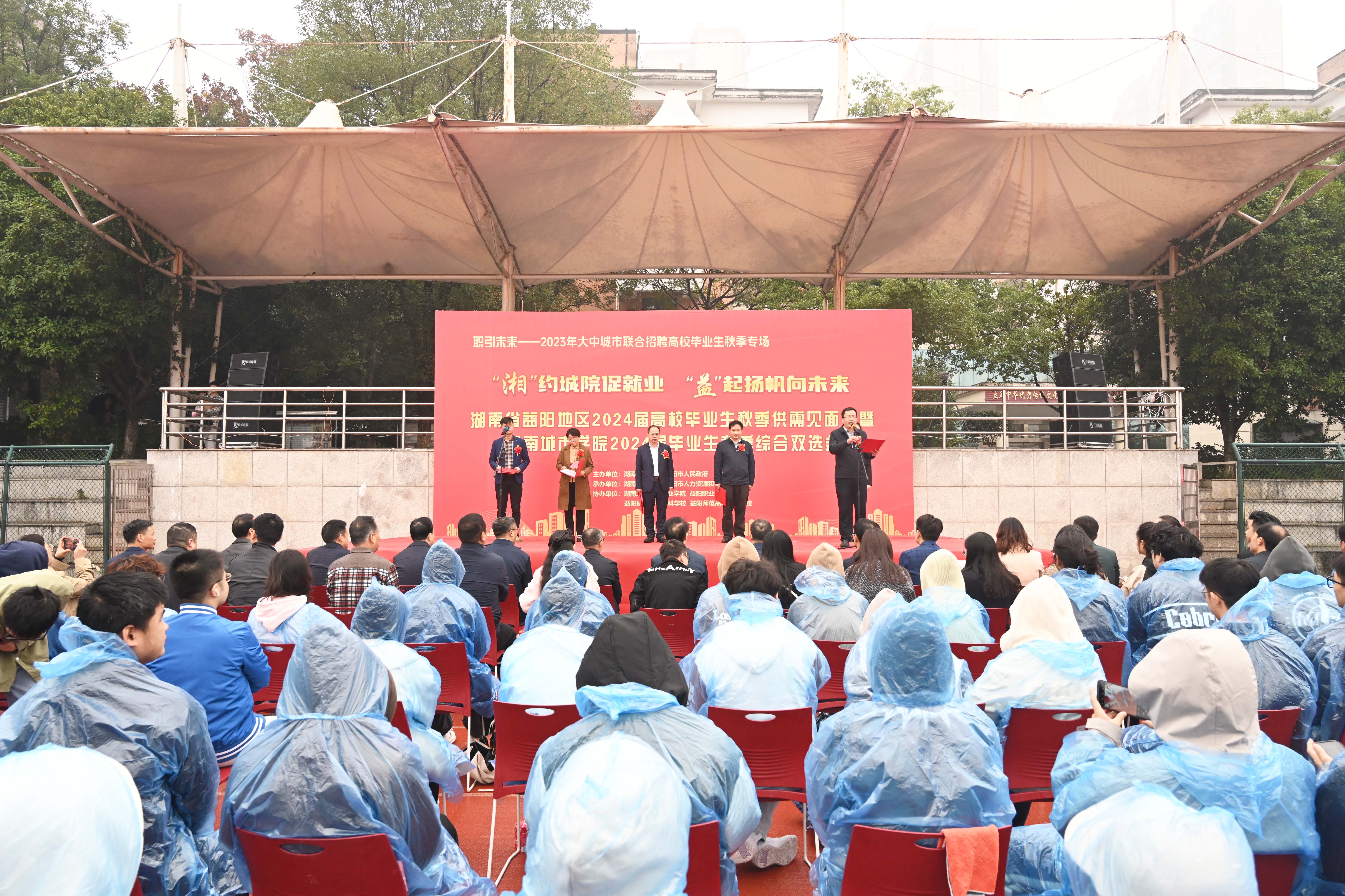 本网讯(通讯员 周文娟)“湘”约城院促就业,“益”起扬帆向未来!11月10日,益阳地区2024届高校毕业生秋季供需见面会暨华体网页版2024届毕业生秋季综合双选会在我校西田径场举行。此次活动由湖南省教育厅、益阳市人民政府主办,华体网页版、益阳市人力资源和社会保障局承办,共吸引了来自省内外的165家用人单位参加,提供招聘岗位492个,涉及土木工程、城乡规划、网络工程、人工智能、汉语言文学等多个专业,需求总人数6590人。现场7000余名求职者参加,共达成初步就业意向646人,还有2409人正与用人单位后续面试中。