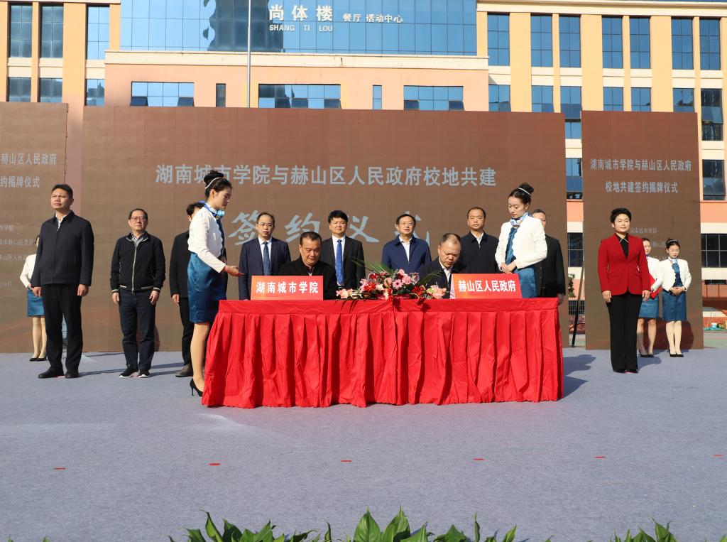 仪式上,我校党委书记汤放华、赫山区区委书记周卫星为华体网页版附属梓山湖学校揭牌;副校长雷存喜与赫山区副区长赵嘉喜签订校地共建框架协议书。