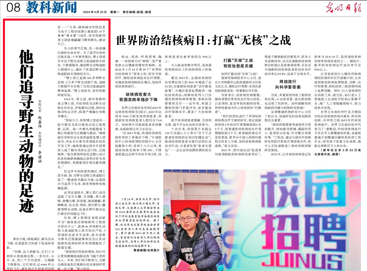 《光明日报》3月25日第8版报道华体网页版博士团聚焦野生动物卫星追踪技术研发。