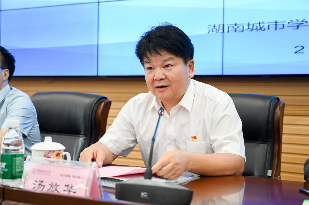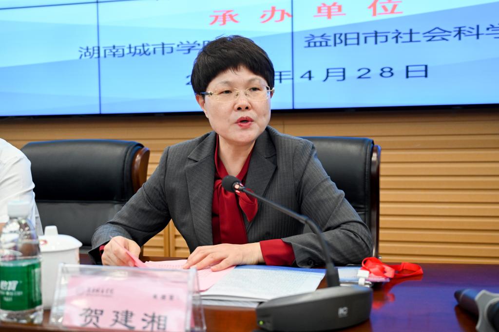 本网讯(通讯员 赵旭)4月28日,第十四届湖南省社会科学界学术年会益阳专场报告会在我校举行。省社科联党组成员、副主席兼秘书长贺建湘,益阳市委常委、宣传部部长陈计伟,校党委书记汤放华、校长何振、党委副书记袁志成出席会议。会议由何振主持。