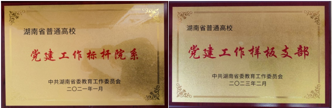 5年来,学院党委被认定为湖南省高校党建工作“标杆院系”,教工第二党支部被评为湖南省高校党建工作“样板支部”,教工第一党支部、学生第一党支部获得学校党建工作“样板支部”称号;1人获得湖南省高校教工党支部书记“双带头人”标兵,1人获得湖南省教育系统优秀党务工作者,15人获得学校“优秀共产党员”“优秀党务工作者”或“优秀教师”,发展了230名预备党员并转正212名,其中教师党员2名。