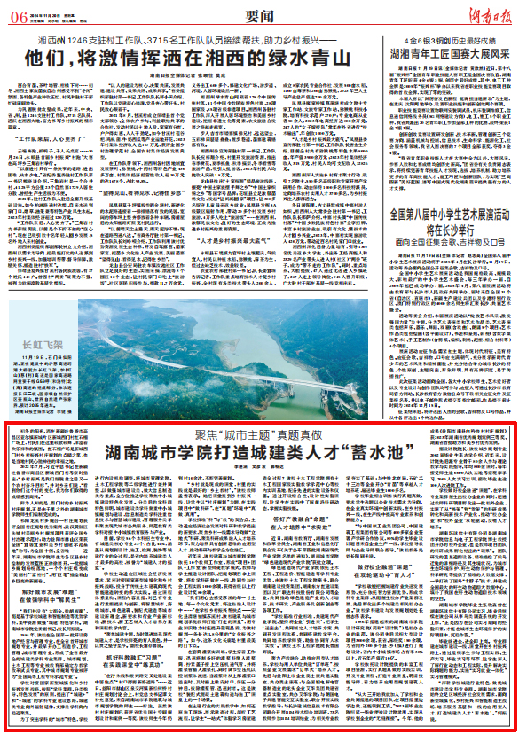 本网讯 11月20日,《湖南日报》06要闻版报道华体网页版聚焦“城市主题”,真题真做,打造城建类人才“蓄水池”。全文如下: