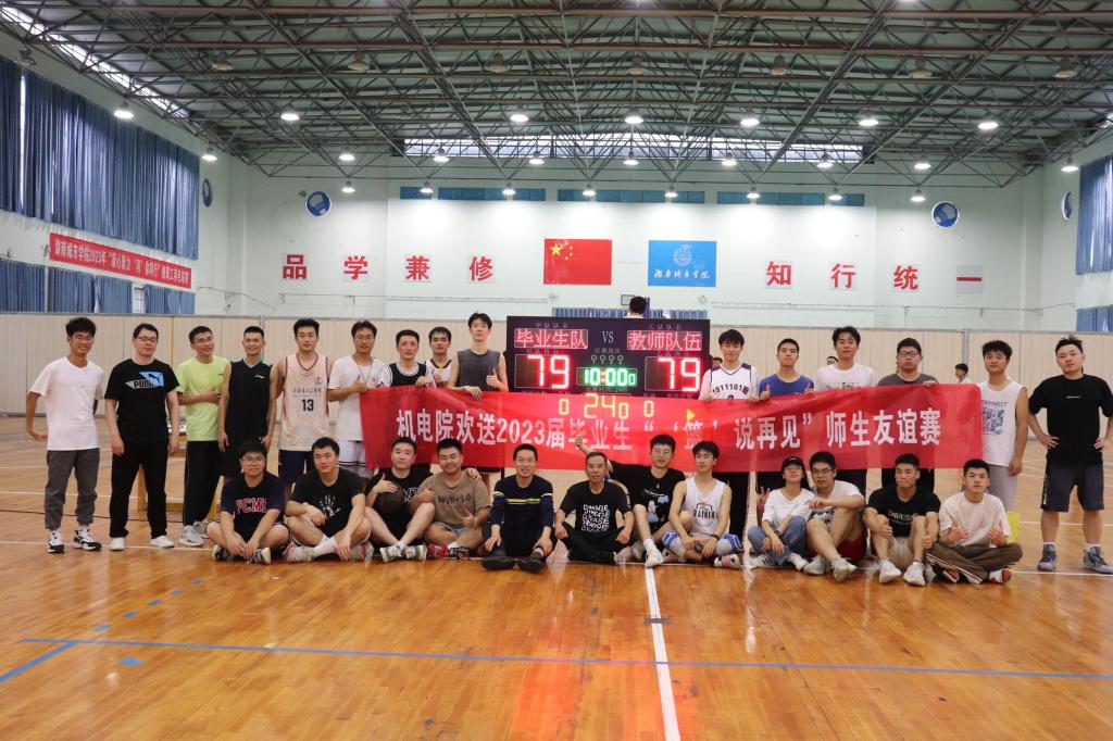 为了欢送23届毕业生,加强师生之间的深厚感情,我院于2023年6月16日下午四点半在体育馆举行“篮”说再见师生友谊赛,参加此次比赛的有学院领导、任课教师代表以及23届毕业生代表。