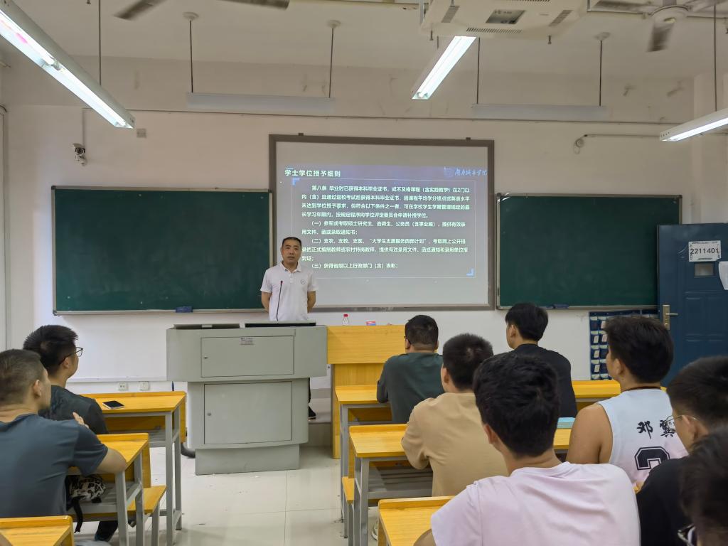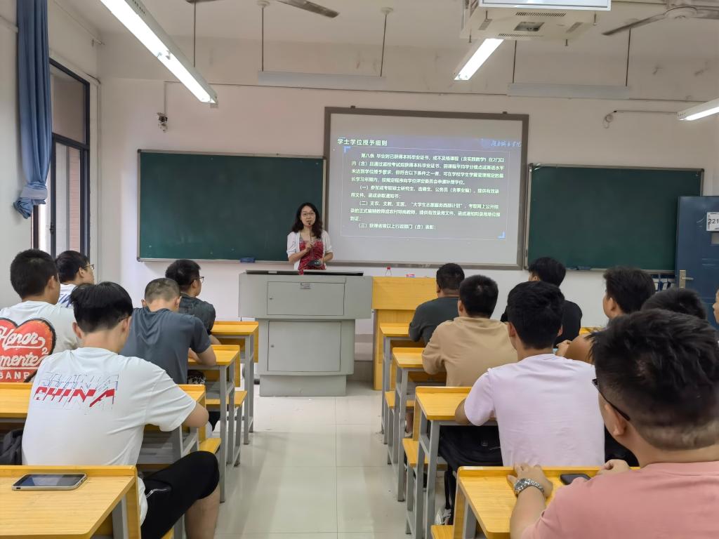 为切实引导2023级专升本的新生尽快适应大学生活,深入了解专业优势,树立专业自信,合理规划自己未来人生目标,机械电气工程学院于2023年9月14日下午在土木楼503教室召开专升本学生师生见面会出席此次会议的有机械与电气工程学院院长阳同光、副院长张闻芳、党委副书记易志明、机械设计制造及其自动化系系主任殷赳、电气工程及其自动化专业系主任彭丽、学工办主任周文萍以及全体专升本新生。