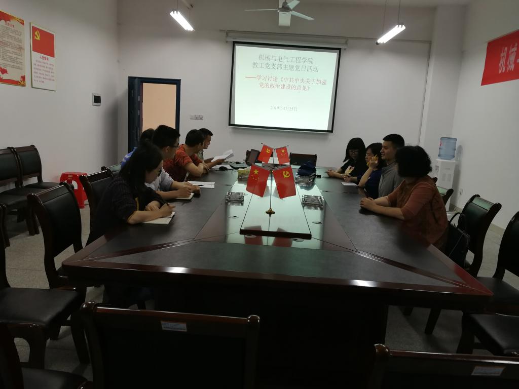 通过此次党日活动,我院教工第二党支部党员同志们进一步认识到了加强政治建设和全面从严治党的重要性,大家深受教育、受益匪浅,纷纷表示要认真学习贯彻文件精神,进一步深化对党的政治建设的认识,把准政治方向,提高政治能力,防范政治危险,永葆政治本色。 (机械与电气工程学院教工第二党支部)