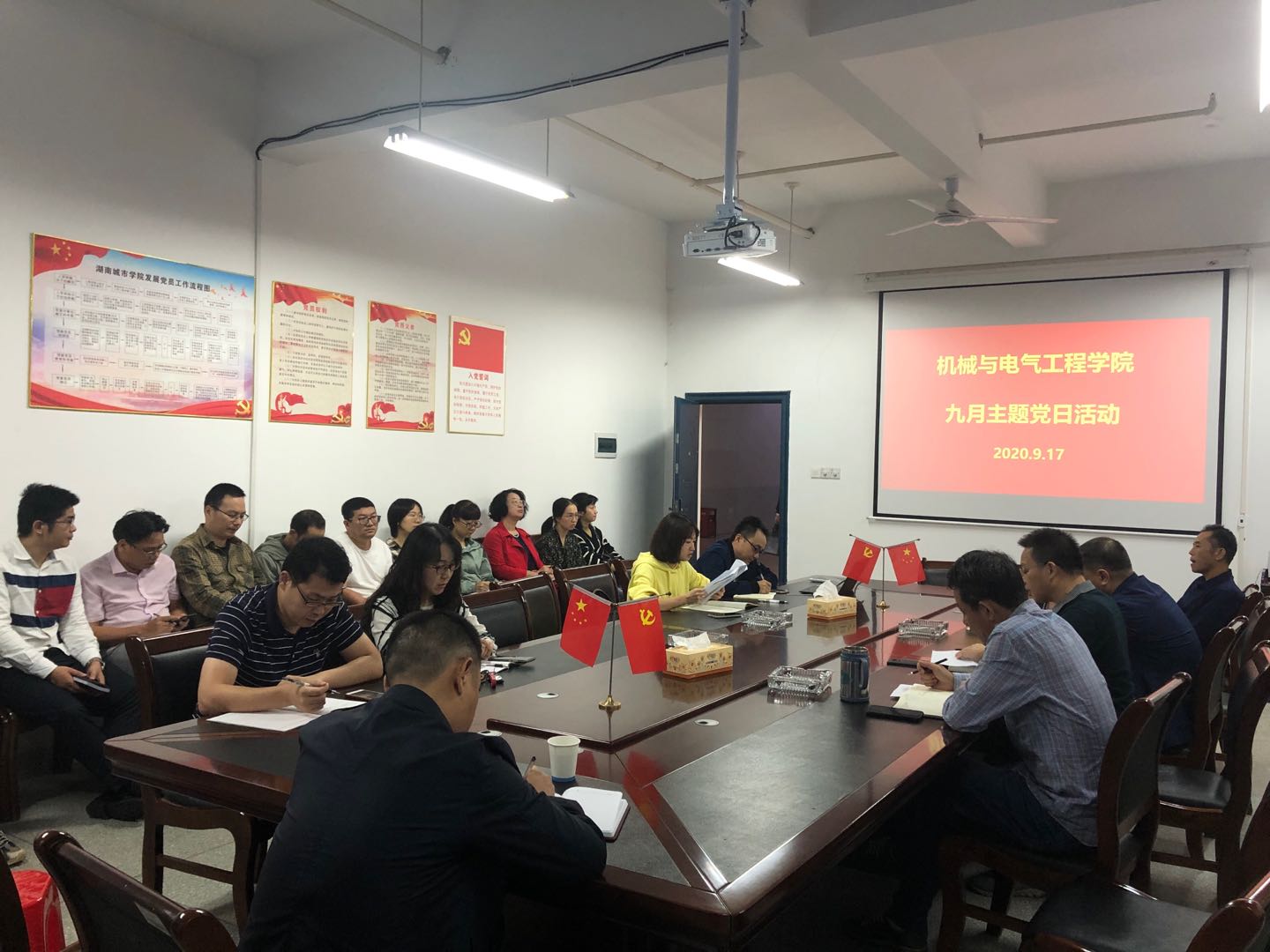 2020917日,我院教工第一党支部按照上级党组织要求,在机电院会议室313开展了九月份主题党日活动。本次活动由支部书记周理主持,支部全体在校党员参加。