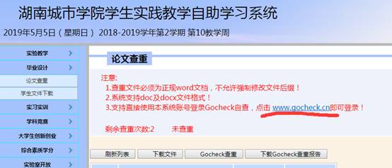 我校毕业综合训练管理系统目前已完成与gocheck论文检测系统的对接,学生在上传终稿后且经指导教师在系统中允许后可对终稿正文进行自测。学生可自行免费检测2次,免费查重次数用完后,需要在gocheck检测系统里充值进行查重。具体操作如下: