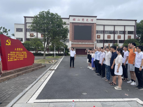 集中宣誓在金家堤支部陈列馆外广场举行,院党委书记张光富带领全体党员,面向鲜红的党旗,庄严的握起右拳,重温入党时的铮铮誓言,表达坚定跟党都的信心和决心。